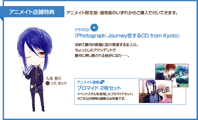 ドラマCD『Photograph Journey 恋するCD from Kyoto』がついてきます。