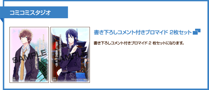 書き下ろしコメント付きブロマイド2枚セットがついてきます。