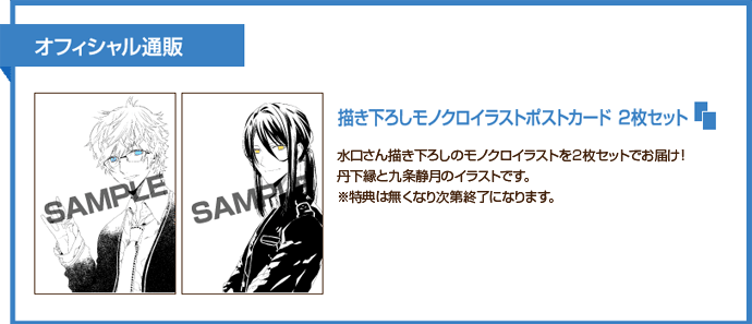 水口十さんの描き下ろしモノクロイラストポストカード2枚セットがついてきます。