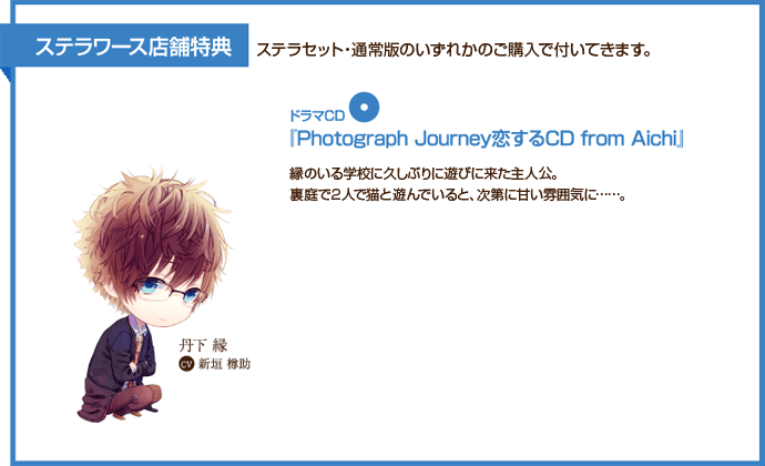 ドラマCD『Photograph Journey 恋するCD from Aichi』がついてきます。