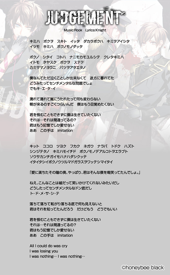 ・『JUDGEMENT/Snow-White』の歌詞を公開しました
