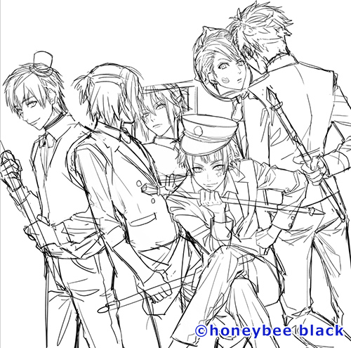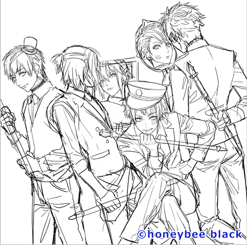 ラフで見るとわかりませんが、完成版では4人で水に浸っています。