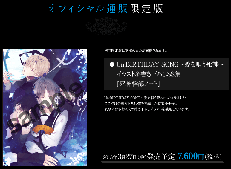 ゲーム第2弾『Un:BIRTHDAY SONG~愛を唄う死神~』の発売に先駆け、