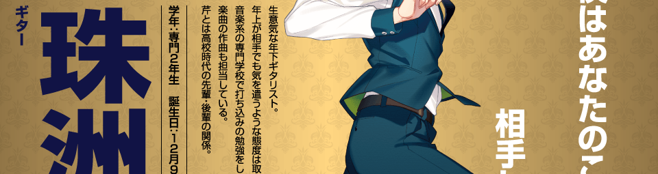 DYNAMIC CHORD vocalCDシリーズvol.2 Liar-S 4560269476931 2014.10.31/¥1,800+tax PCゲームに先駆け、各バンドの楽曲と、バンドメンバーとの甘いひとときを描いたドラマが収録される「DYNAMIC CHORD vocalCDシリーズ」が10月31日に3枚同時リリース予定!