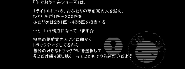 トップページへ 羊でおやすみシリーズとは?へ 今までの羊でおやすみシリーズへ スペシャルページへ
