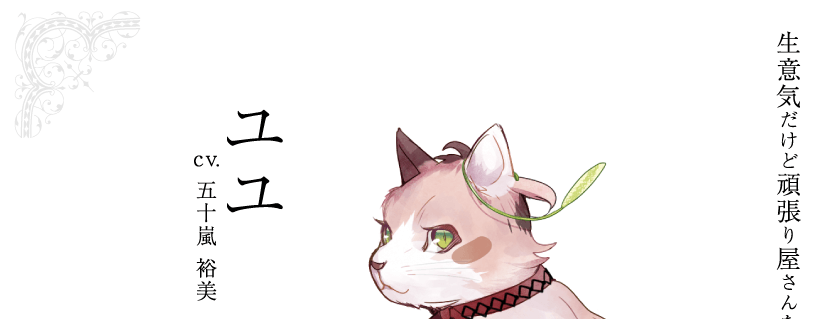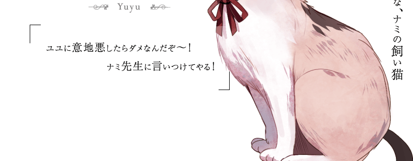 ナミの使い魔。 普段はネコの姿をしているが、必要になれば人間の姿に変化してナミの授業のサポートをする。 ナミと同じく何十年と冥府に住んでいるが、精神的にはまだ子ども。 いたずら好きで、よくカイリと一緒になって他の生徒に悪さをしている。