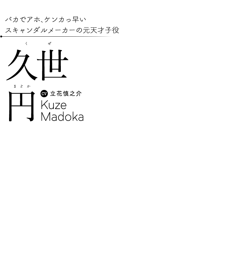 御曹司にして、華純の双子の兄。天才子役として一時期大活躍していたが、今では適当に仕事をして遊び歩いている。今は財閥が経営する企業のCMや、スポンサーになっている番組などに出演。一時期持て囃されていたせいか、調子に乗っていて性格がひん曲がっているうえにケンカっ早く、よくスキャンダルを起こしている。が、顔だけはいいのでモテる。