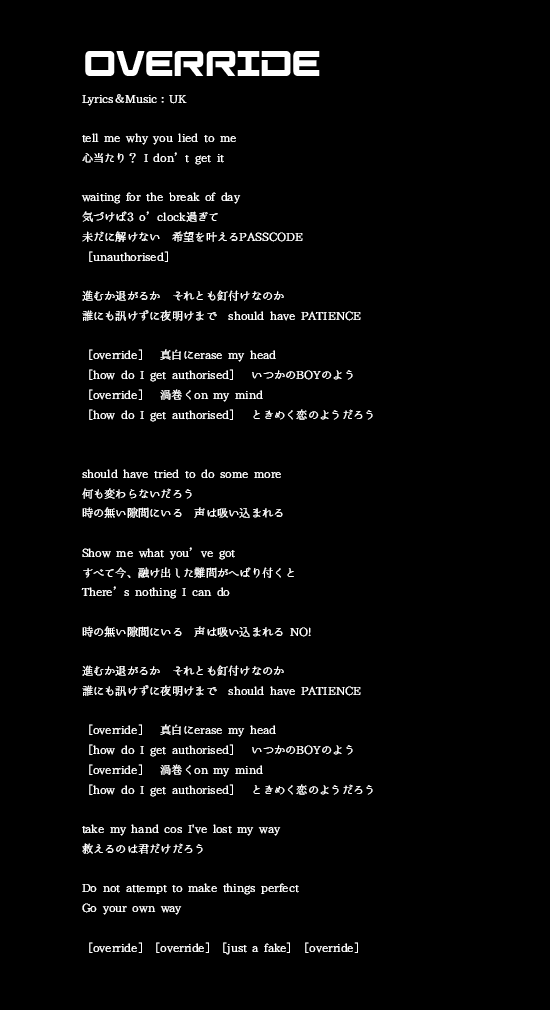 OVERRIDE 歌詞
