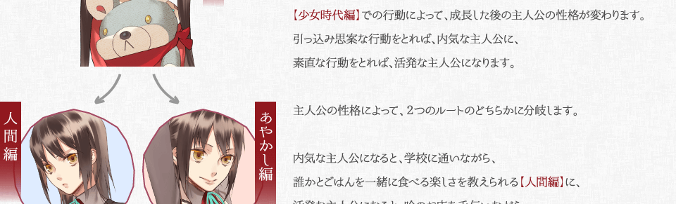 あなたの行動次第でお話は変化していきますので、心の赴くままに選択肢を選んで物語を進めてください。