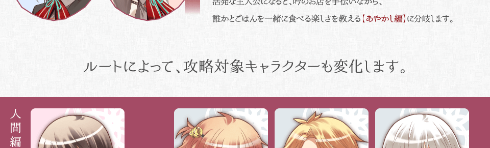 条件を満たすと、謡、詠、萩之介、蘇芳、真夏、浅葱、吟、神様のおまけシナリオが解放されます。