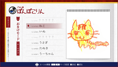 見つけたラクガキによって、キャラクターページやメイキングラフ、制作コメント、また吟や神様のおまけシナリオなどを見ることが出来ます。